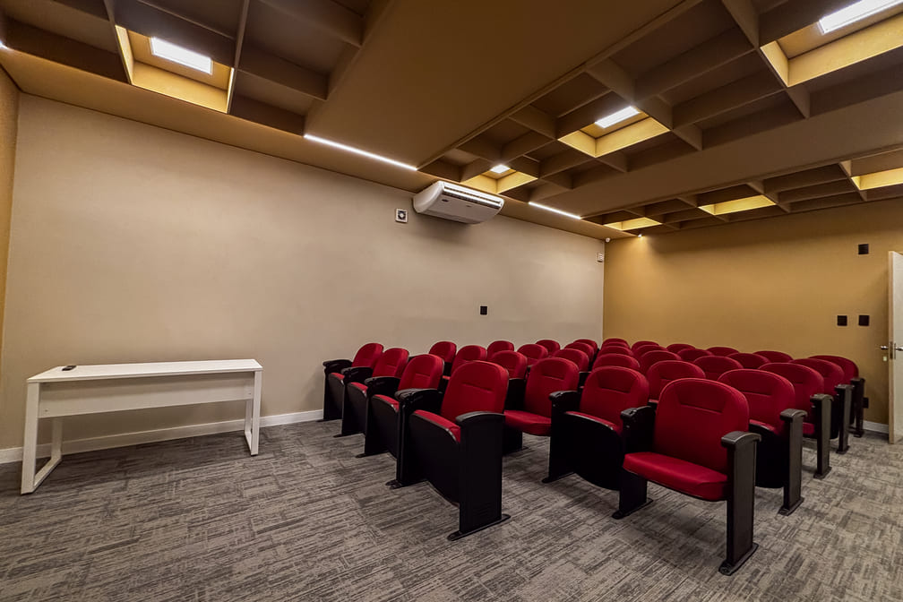 Disponibilizamos salas de aula confortáveis e com equipamentos modernos de áudio e vídeo, Wi-Fi, ar-condicionado e que podem ser montadas na configuração que melhor atende às necessidades do seu curso ou evento.